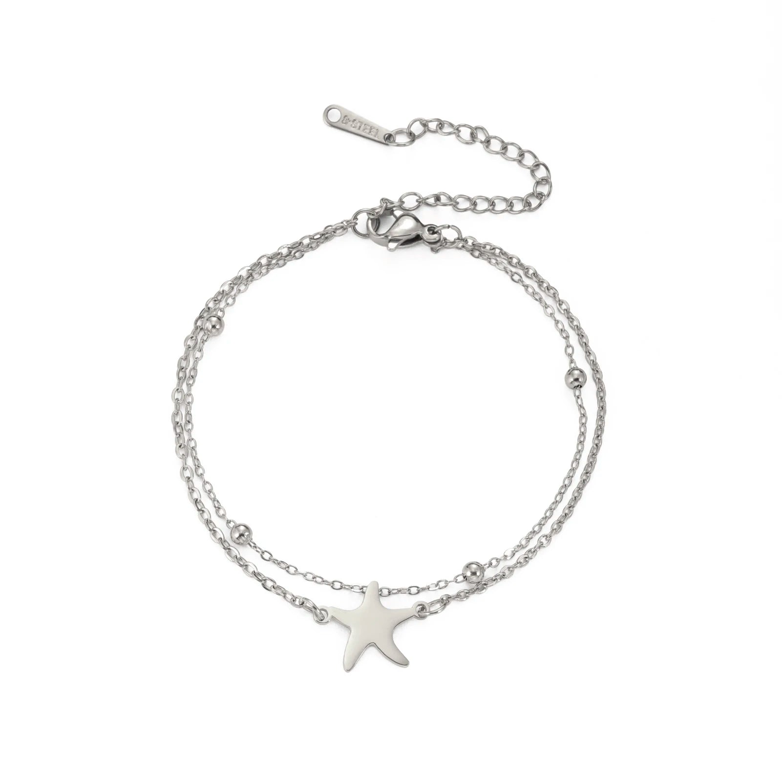 Channel beachy, free-spirited vibes with this stainless steel layered bracelet. Featuring a dainty starfish charm and delicate beads, it’s the perfect blend of coastal and boho chic.